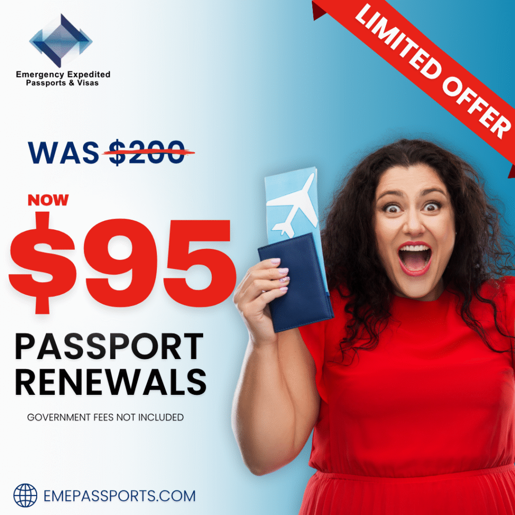 Just fill out the form below to get started. Our team will review your details and reach out to confirm your spot in the $95 passport renewal promotion. Please note there is limited spots avialable
